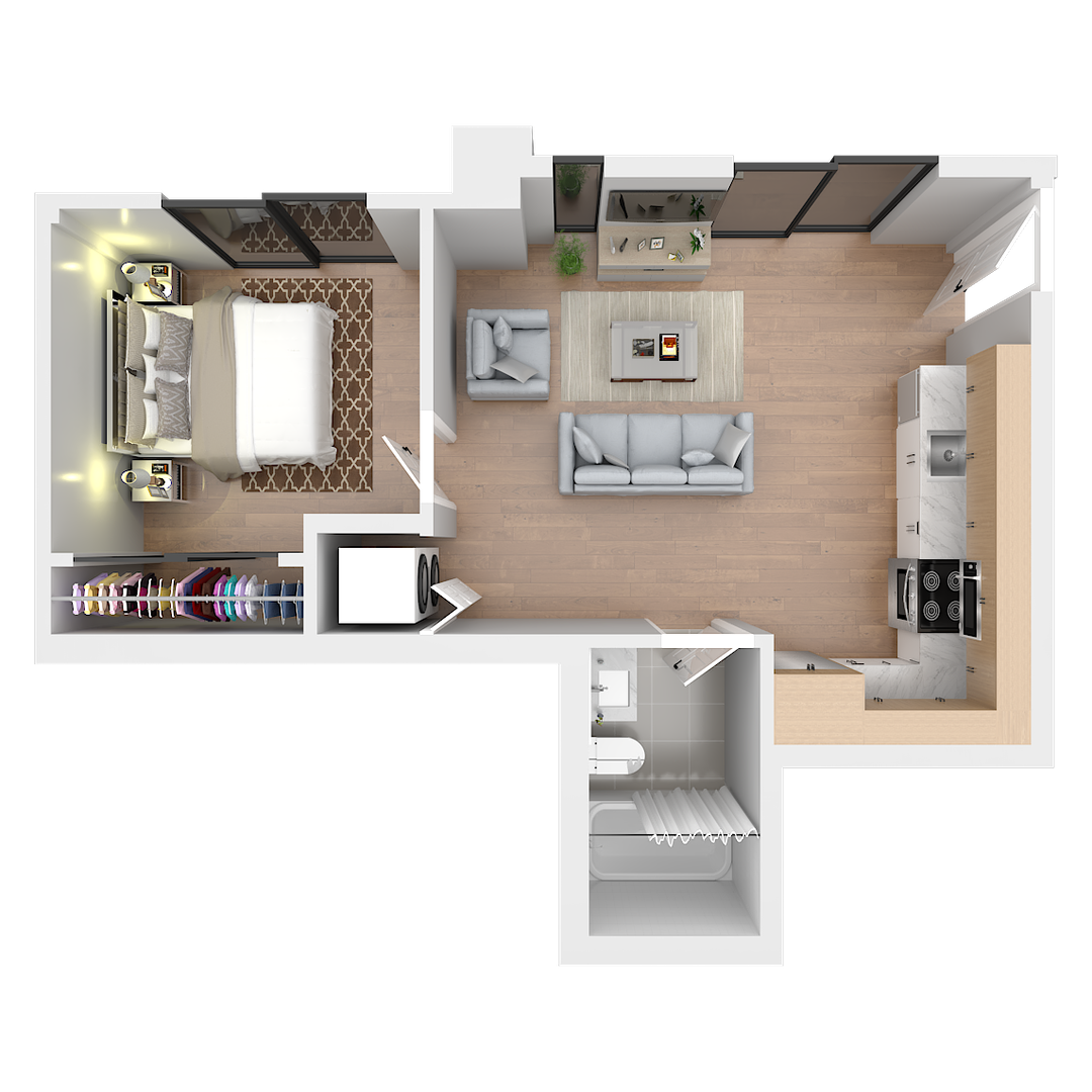 Discover modern, elevated living in this stunning 3rd-floor one-bedroom apartment, thoughtfully designed for both comfort and style. This spacious unit features an open floor plan that fills the space with natural light and highlights a beautiful city view through oversized sliding doors leading to a charming Juliet balcony.