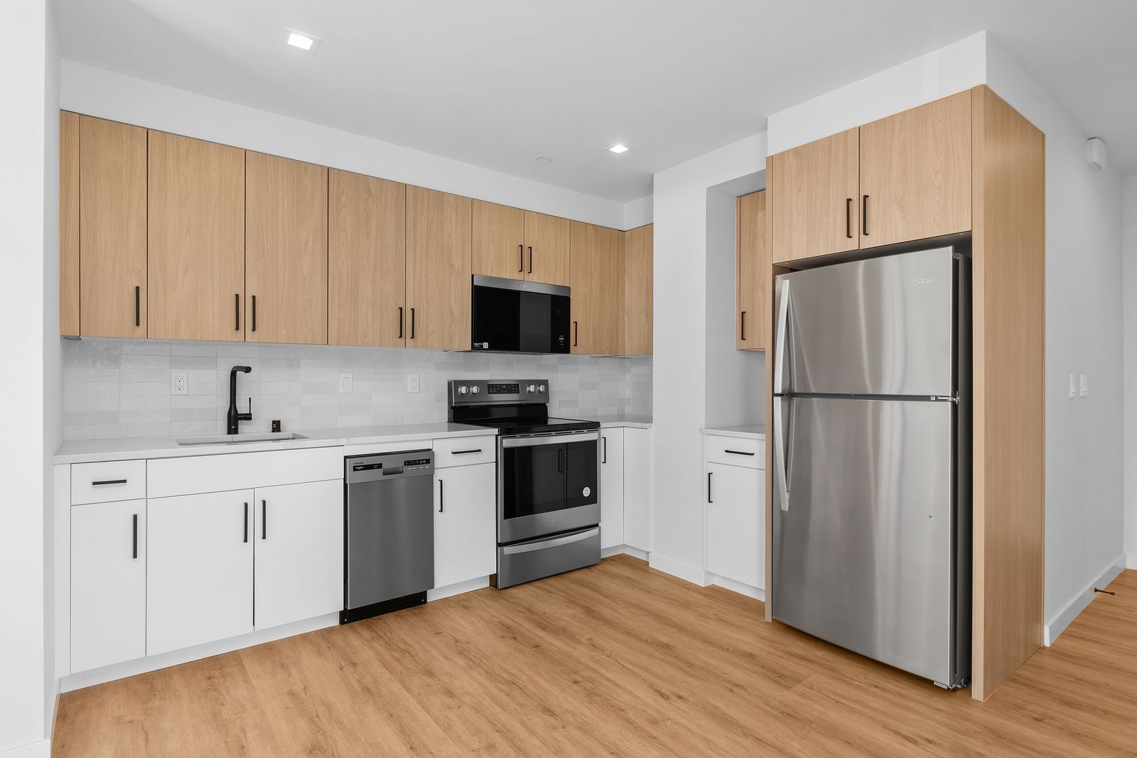 Completed in October 2024, this residence showcases high-end, modern finishes and amenities throughout, with careful attention to both design and functionality. The kitchen features sleek stainless steel appliances and elegant quartz countertops, and the unit includes a private, in-unit washer and dryer for added everyday convenience. Its elevated position within the building provides a comfortable sense of privacy while still enjoying warm afternoon light.