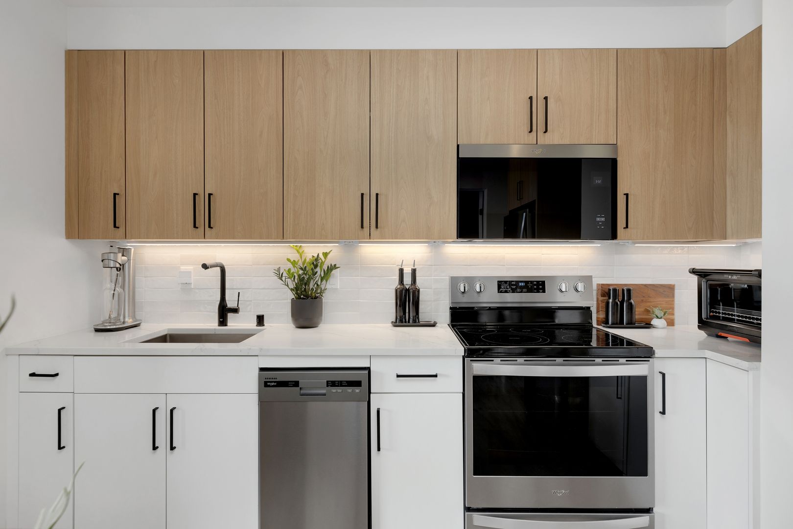 Completed in October 2024, this building blends luxury design with exceptional comfort. Inside, you’ll find sleek quartz countertops, luxury finishes, a full-size washer and dryer, and a dishwasher for your convenience. Located on the second floor, this home features a walk-in closet, a scenic village view, and sliding doors that open to a charming Juliet balcony. The second bedroom offers versatile use — perfect for a guest room, home office, or creative space.